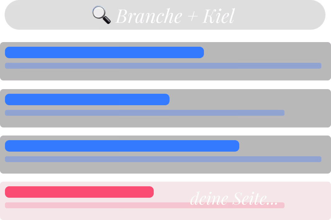 Wenn jemand nach deiner Branche in Kiel googelt oder über Ki sucht, taucht deine Seite nicht auf.
